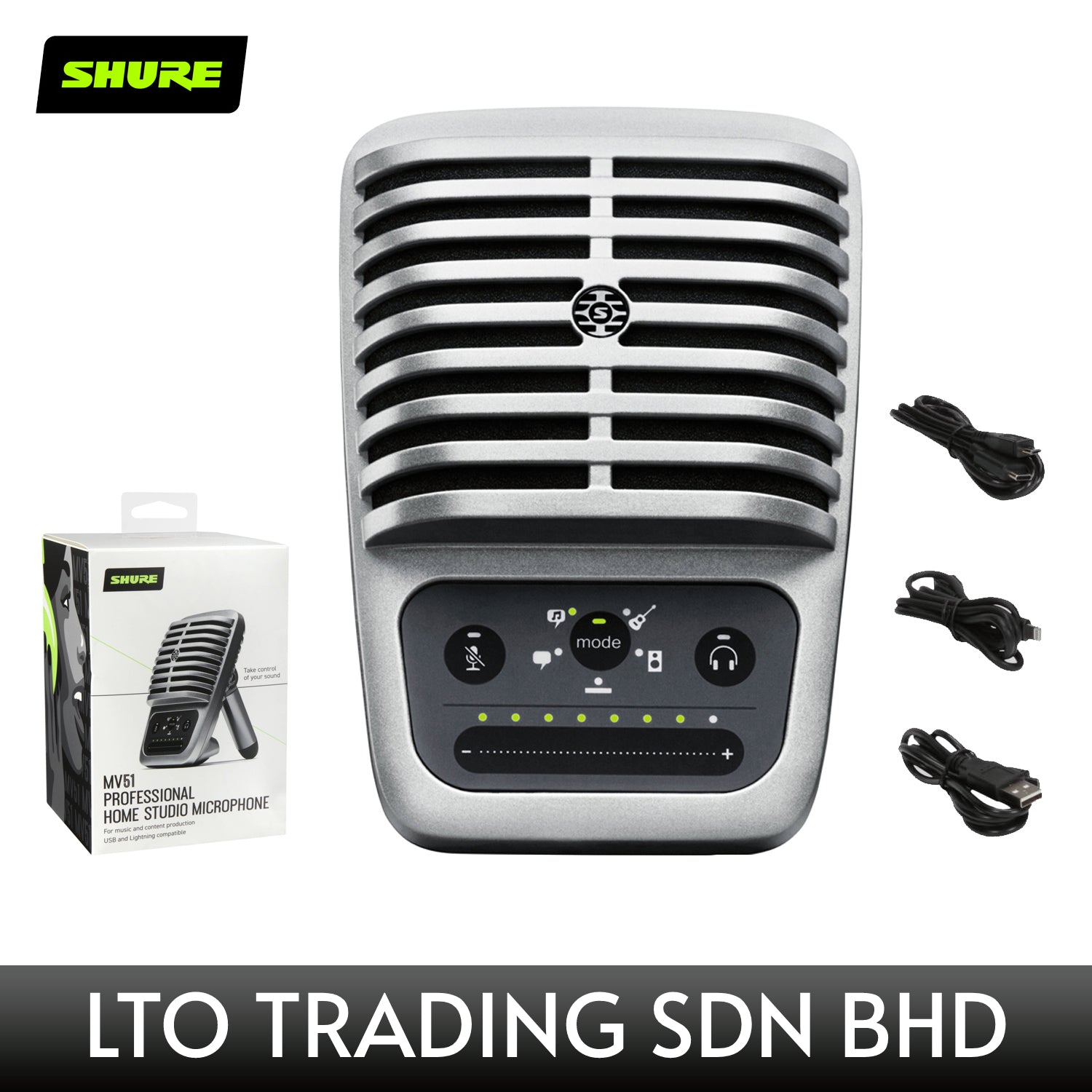 SHURE MV51-DIG-A Large-Diaphragm Cardioid USB Microphone for Computers and iOS Devices